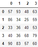 >>> matrix = np.random.randint(10, 100, size = (5,4))