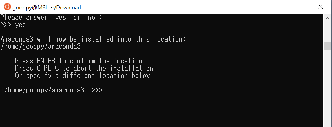 - yes를 입력하여 설치를 진행해주자.