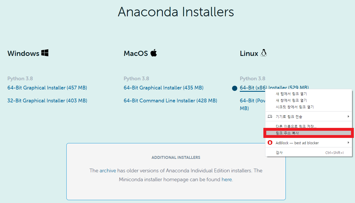 - 아나콘다를 설치하는 방법은 이전에 다뤘던 "python 파이썬과 아나콘다" 포스트와 거의 유사하다.