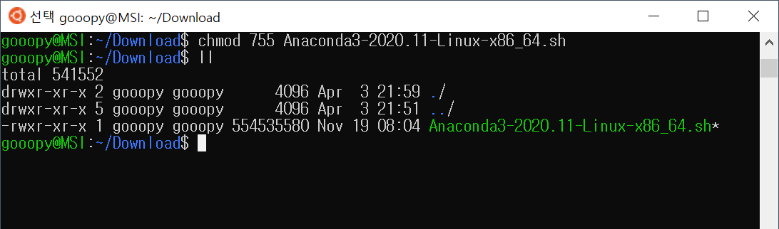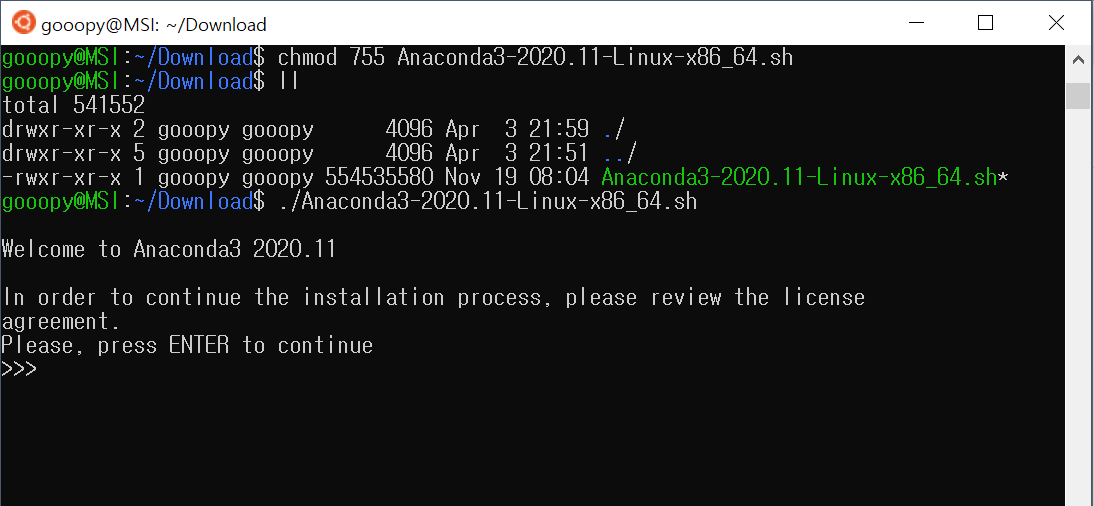 chmod 755 Anaconda3-2020.11-Linux-x86_64.sh