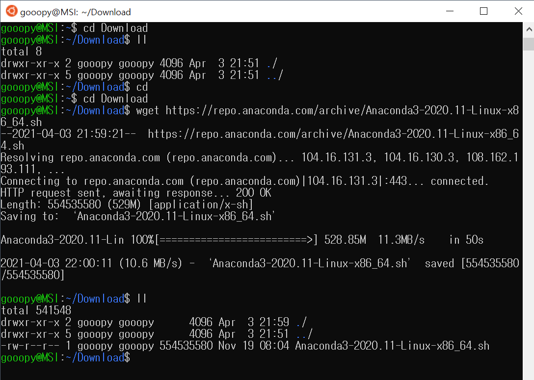 3.2. 아나콘다 설치 파일을 Download 디렉토리에 설치하자