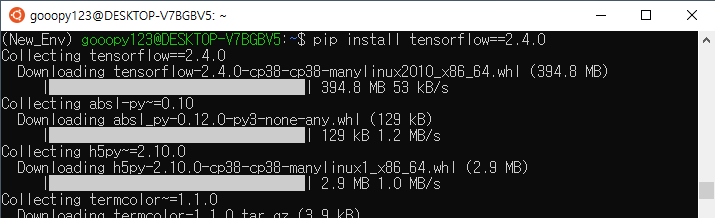 (가상 환경에 설치하므로, 둘 중 아무거나 사용해도 된다.) - tensorflow 2.4.0 버전, tensorflow-gpu 2.4.0 버전, pytorch 1.8.1 버전, simplejson을 설치해보자.