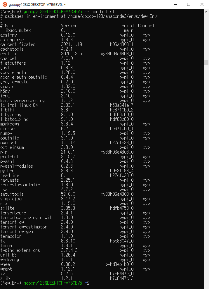 지금까지 아나콘다를 이용하여, 가상 환경을 만들고 필요한 패키지들을 설치해보았다. 만약, 다른 라이브러리가 더 필요하다면, 필요한 라이브러리를 더 추가하여 다시 내보내면 된다.