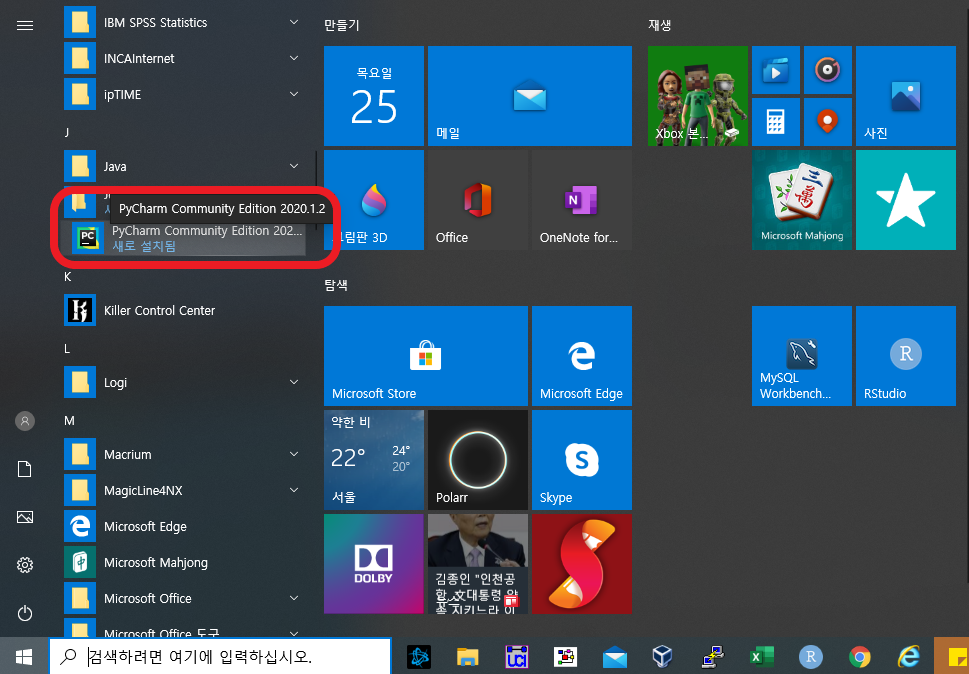 - 파이참을 설치할 때, JetBrains라는 파일에 들어가도록 이름을 정했었다(Default 값이므로, 위 설치 방법처럼 쭉쭉 진행했다면, 내가 언제 그랬지!? 하고 오해하지 않아도 된다.)
