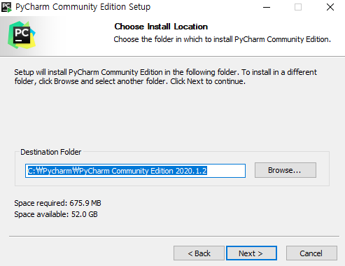 - 설치 경로를 C 드라이브 바로 아래에 Pycharm 파일을 만들어서 그 곳으로 경로를 지정해주자.