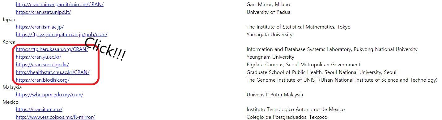 (사실 어느 나라를 쓰던 큰 상관은 없지만... 그래도 이 편이 조금 더 편하다. 그리고 Korea 하단 아무 링크나 눌러도 괜찮다.)