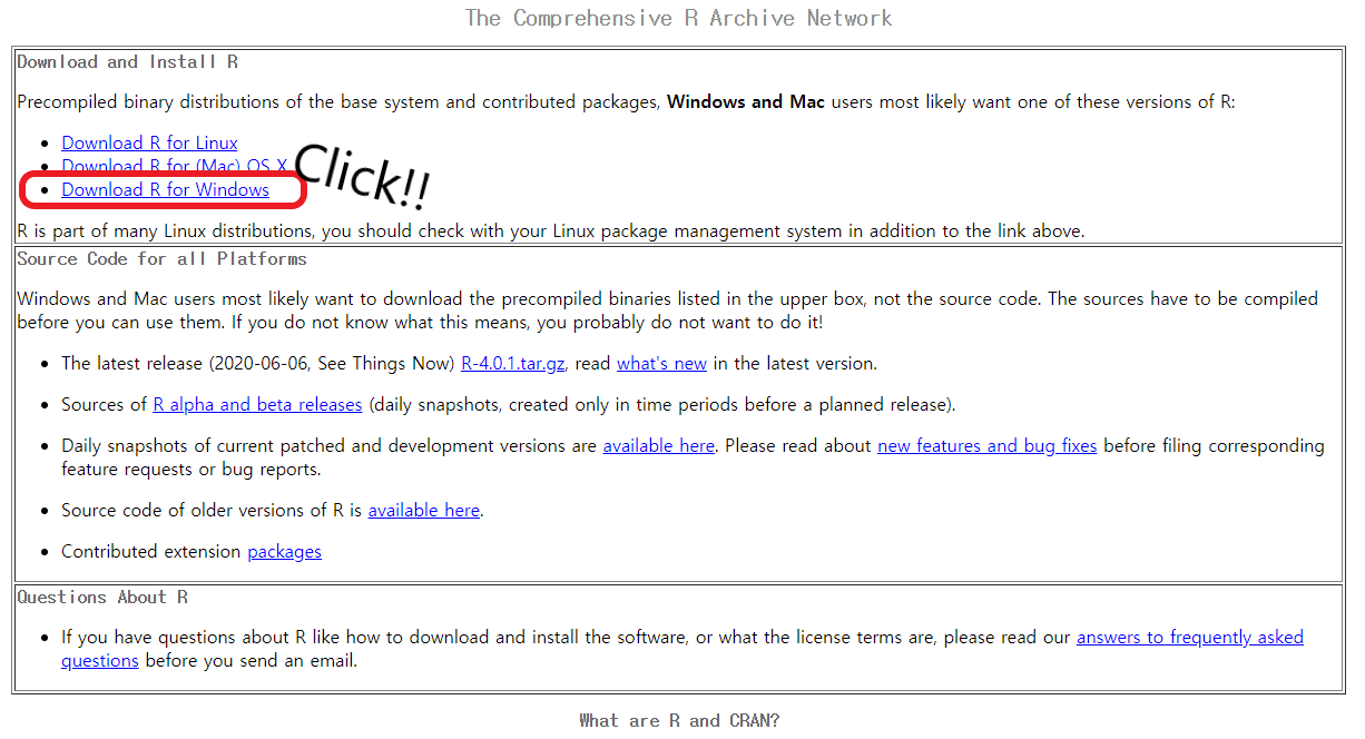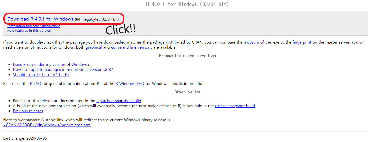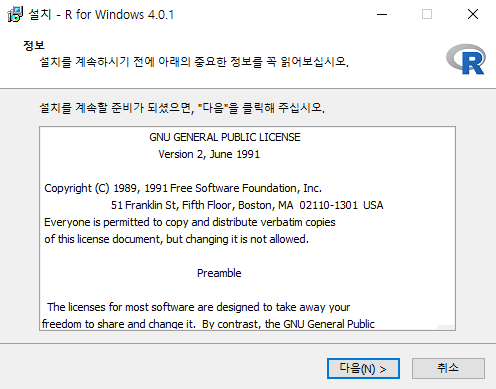 (참고로 R, Python 같은 오픈 소스는 최신 버전이라고, 무조건 좋은 것은 아니다. 필요한 라이브러리(모듈)가 R 버전과 맞지 않아 오류를 일으킬 수도 있기 때문이다.)