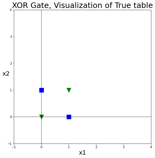 >>> plt.title('XOR Gate, Visualization of True table', fontsize = 25)