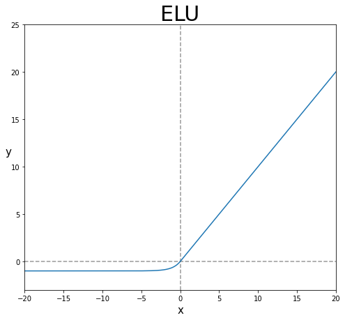 - 그러나, ReLU에 비해 성능이 크게 증가한다는 이슈가 없으며, 되려 exp의 존재로 연산량이 늘어났기에 학습 속도가 ReLU에 비해 느려서 잘 사용하지 않는다.
