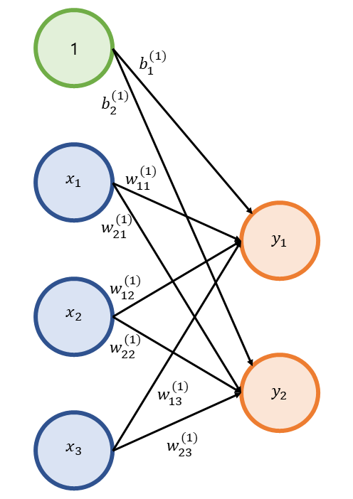 - 가중치에서 위 괄호 안에 들어있는 값은 몇 번째 층(Layer)인지를 의미한다.