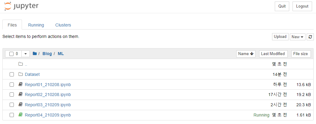 - 현재 작업 중인 주피터 노트북 파일인 Report04_210209.ipynb와 같은 경로에 Dataset이라는 파일을 새로 만들었다.