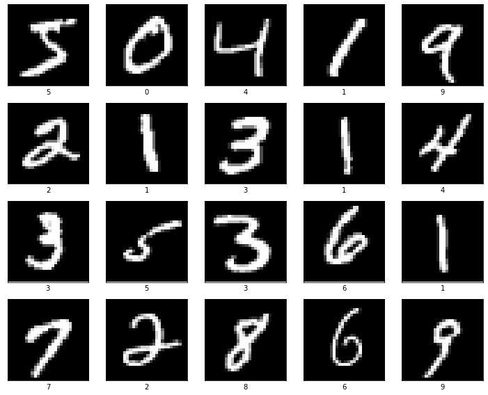 show_images(train_images, train_labels, 4, 5)