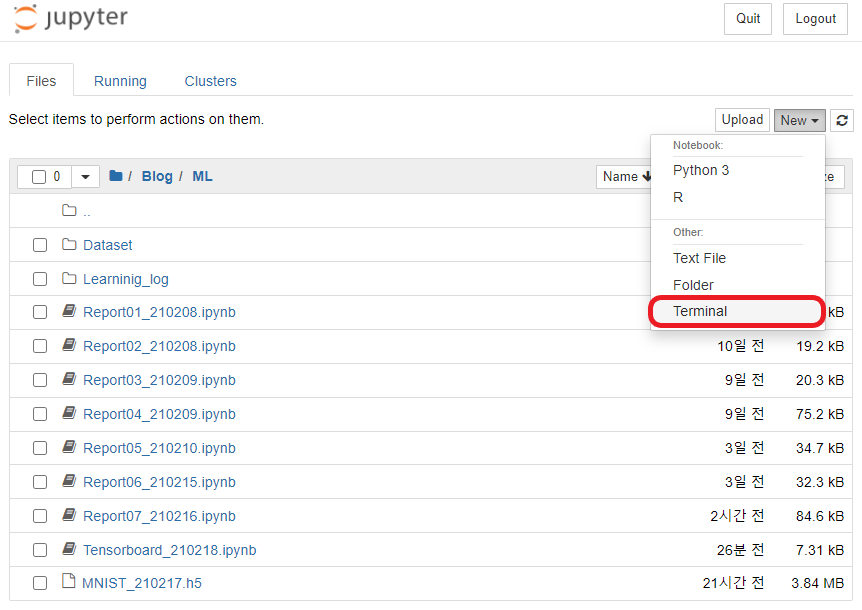 - 머신러닝을 사용한다면, 서버에 붙어서 사용할 가능성이 높으므로, 주피터 노트북을 기준으로 터미널에 접속하는 방법을 설명하도록 하겠다.