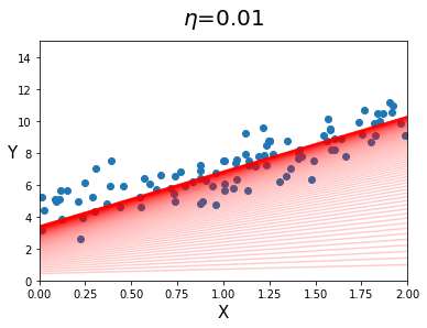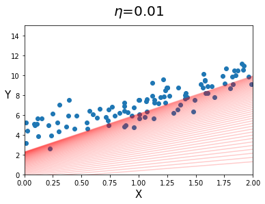 (꽤 많은 머신러닝 알고리즘에서 Learning rate의 기본값을 0.01로 잡아놓는다.) - iteration이 10인 경우