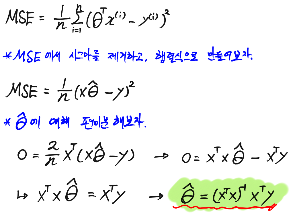 - 앞서 봤던 MSE 공식을 이번에는 벡터 형태로 가지고 와보자.