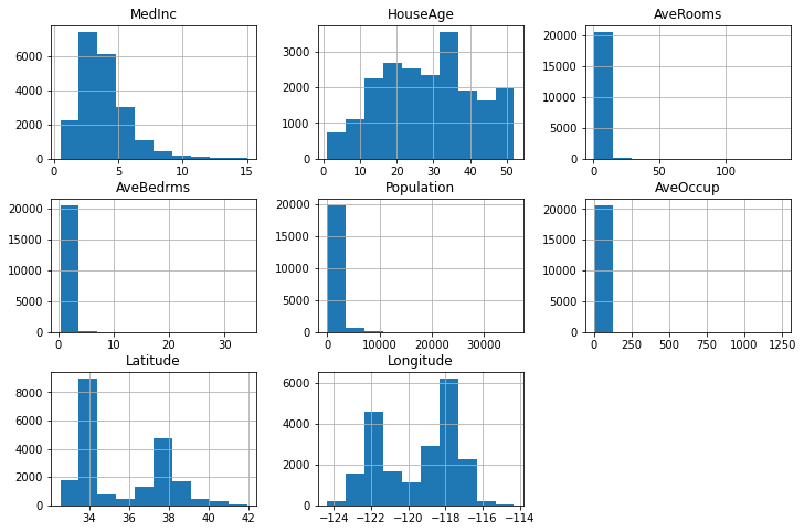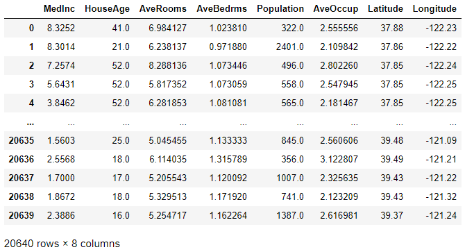 CaliFornia_DF = pd.DataFrame(Rawdict.data, columns=Rawdict.feature_names)