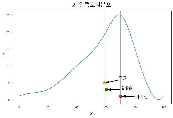 draw_Ske(DF, "f2", "2. 왼쪽꼬리분포")
