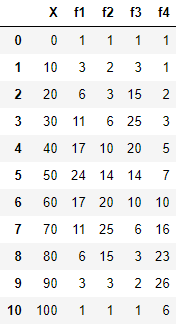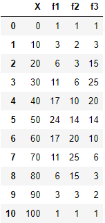 DF = pd.DataFrame({"X":index_list, "f1":freq1_list, "f2":freq2_list, "f3":freq3_list})